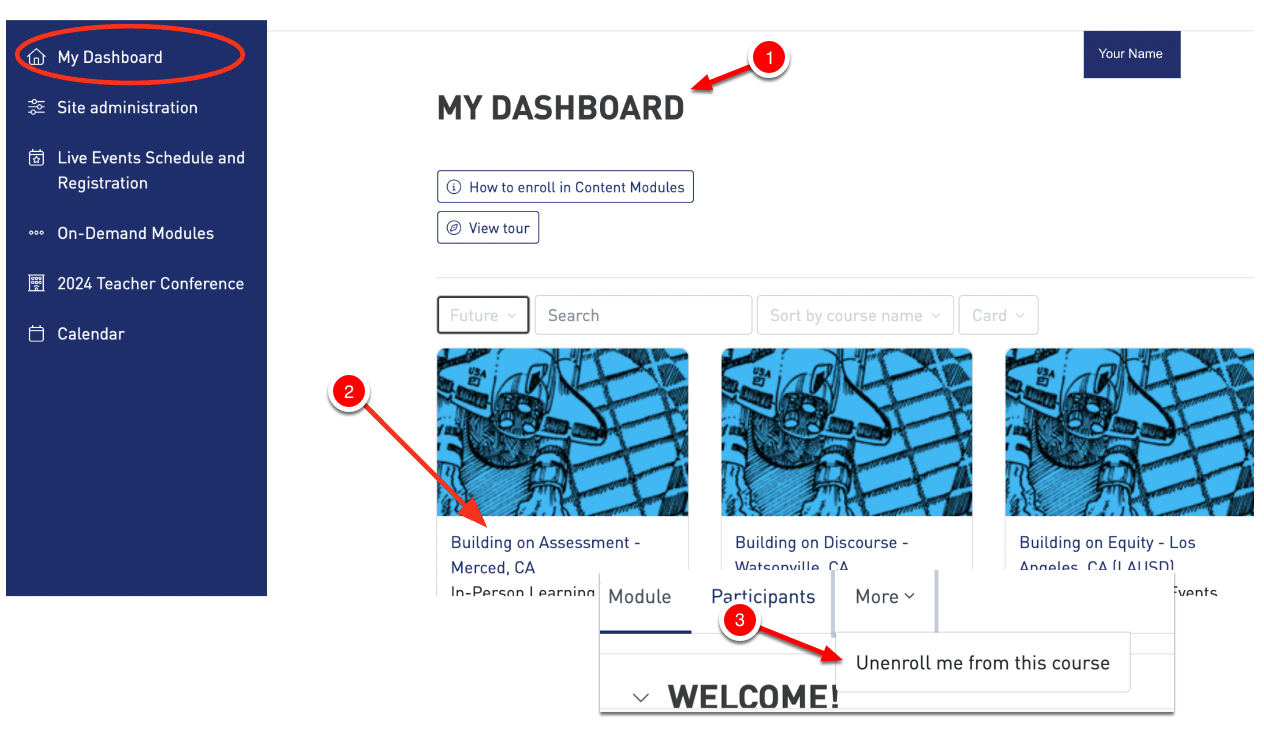1. The event will be on your Dashboard, or you can go directly to: Live Events Schedule and Registration and locate it.